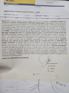 En nuestro próximo informe, el Sindicato de Custodios presentará cartas documento y convenios firmados por diferentes empresas, con el fin de exponer con pruebas la realidad que atraviesan los trabajadores de seguridad privada.