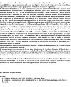 Según consta en las presentaciones administrativas, la agrupación advertía sobre la necesidad de revisar homologaciones, verificar crisis empresariales reales y auditar el impacto previsional.