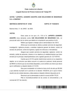 Laporta Leandro Agustín c/ G4S Soluciones de Seguridad S.A.