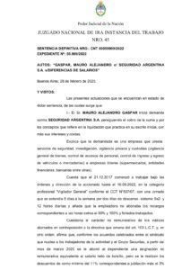 Gaspar Mauro Alejandro c/ Seguridad Argentina S.A.