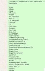 Parte de la documentación aportada en distintas presentaciones incluye un listado de empresas de seguridad privada que habrían ingresado en procedimientos preventivos de crisis durante los últimos años.